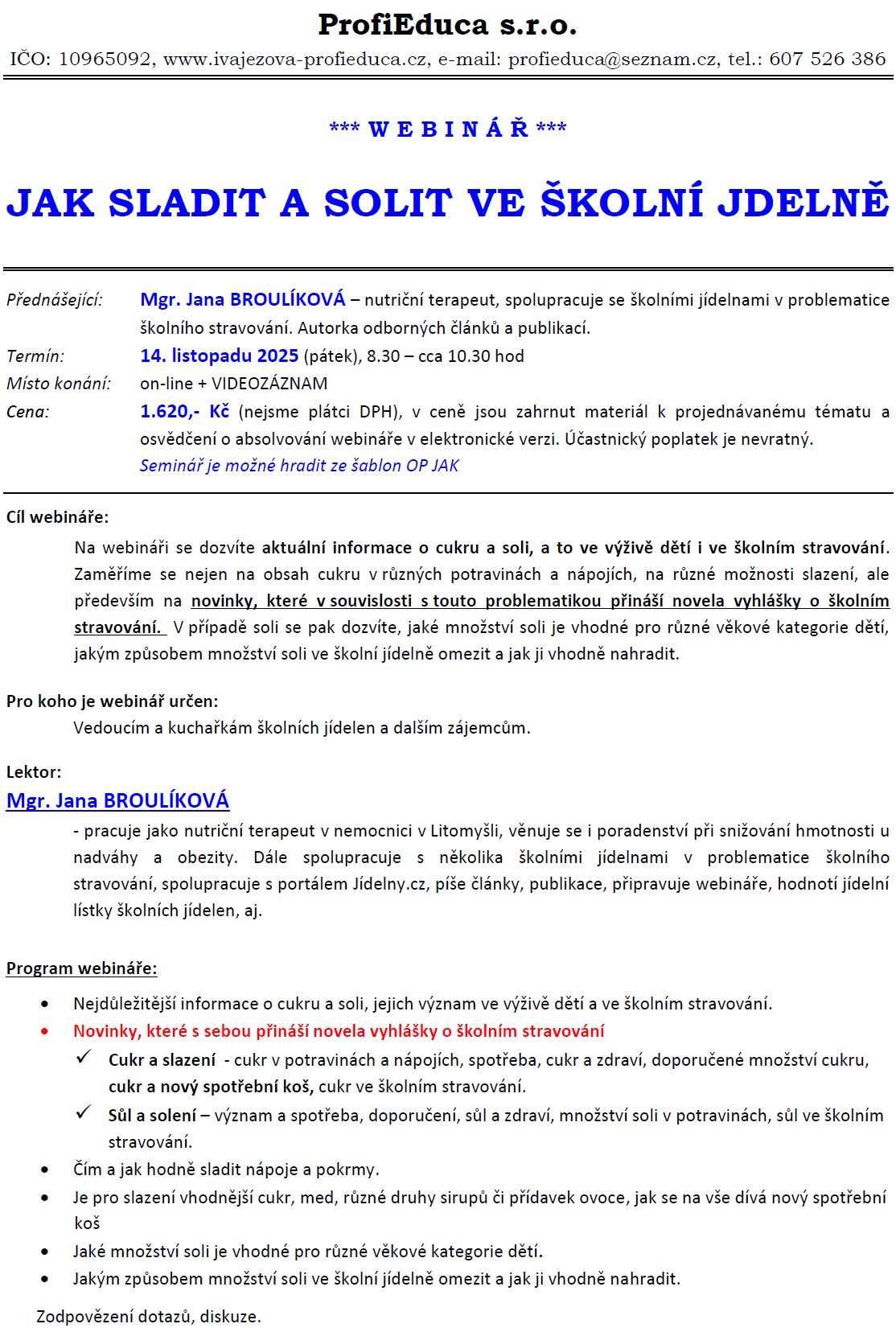 Potvrzuji seznámení s Obchodními podmínkami a souhlasím se zpracováním osobních údajů v souladu s GDPR a zasíláním nabídek na vzdělávací akce, tj. obchodních sděleních. Tento souhlas lze kdykoli odvolat.