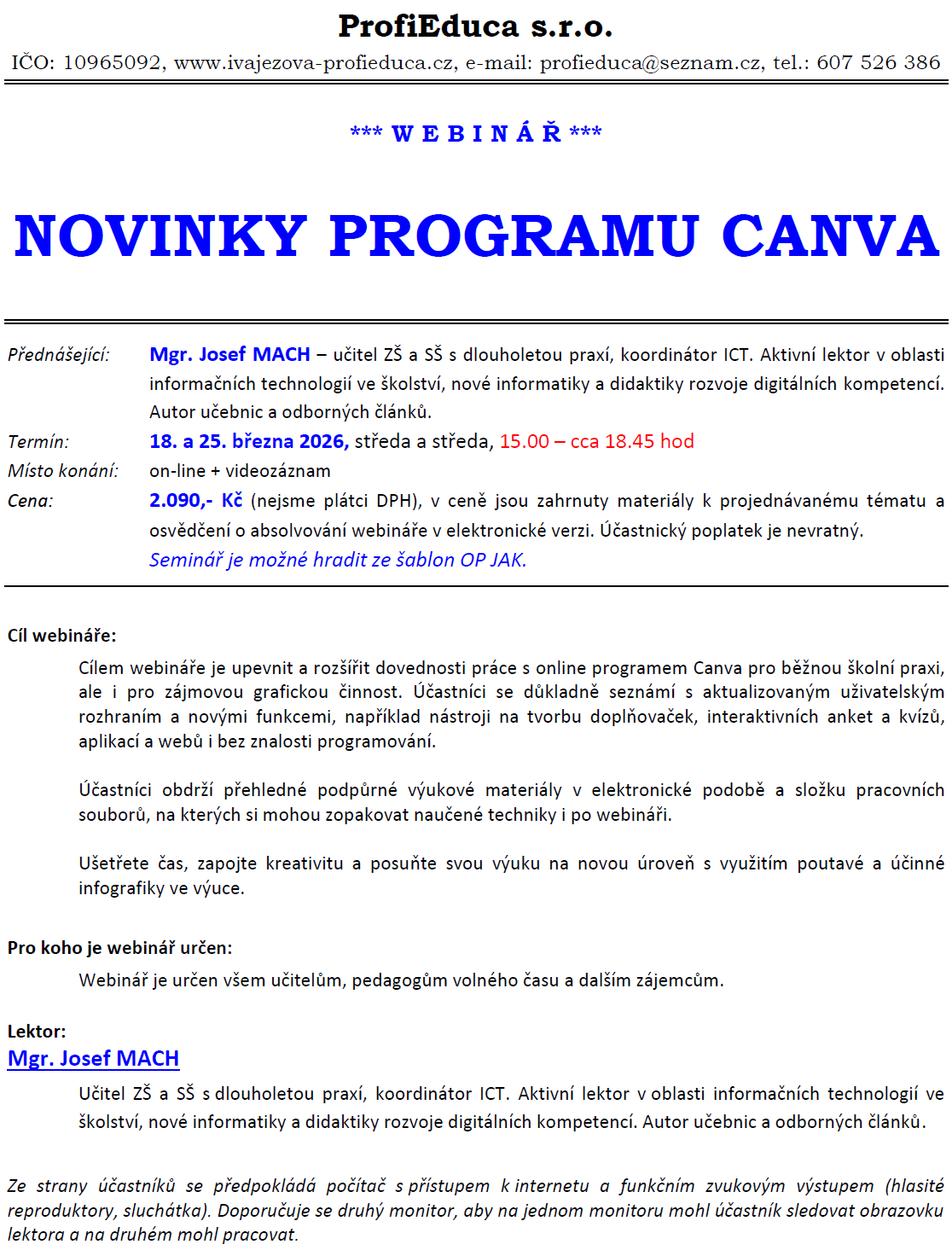 Novinky programu CANVA - webinář