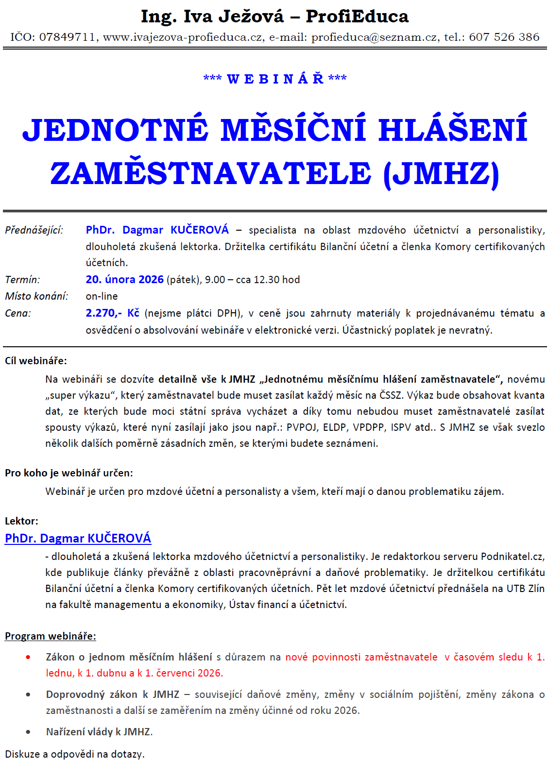 Jednotné měsíční hlášení zaměstnavatele - webinář