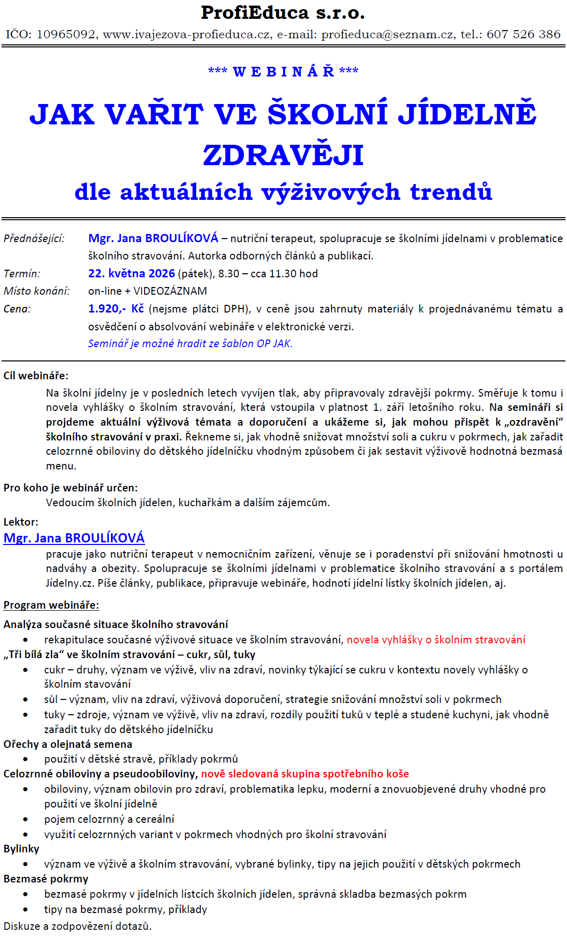 22. 5. 2026, od 8.30 hod, on-line