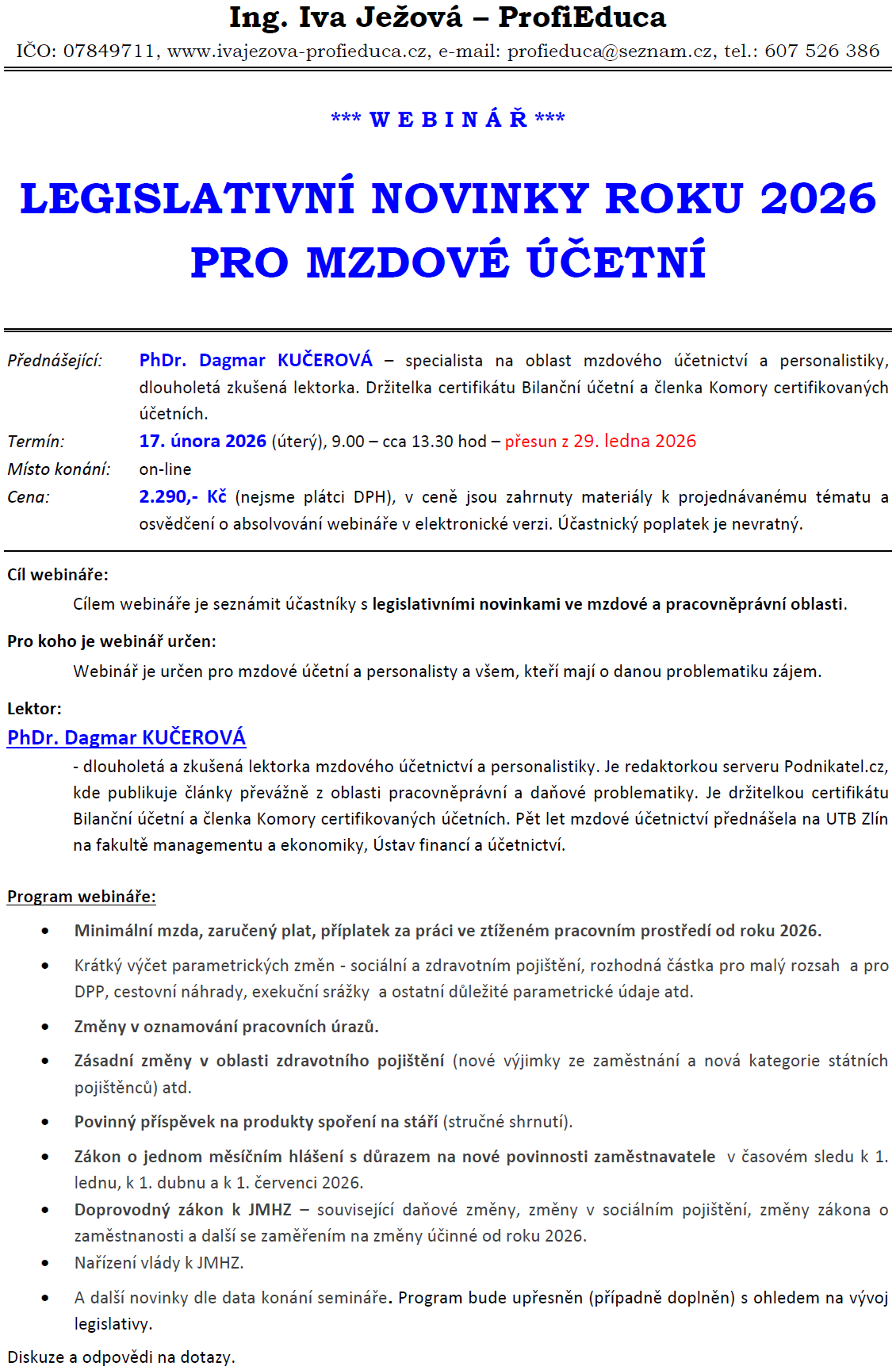 17.2.2026 (přesun z 29.1.2026), on-line, 9.00 hod