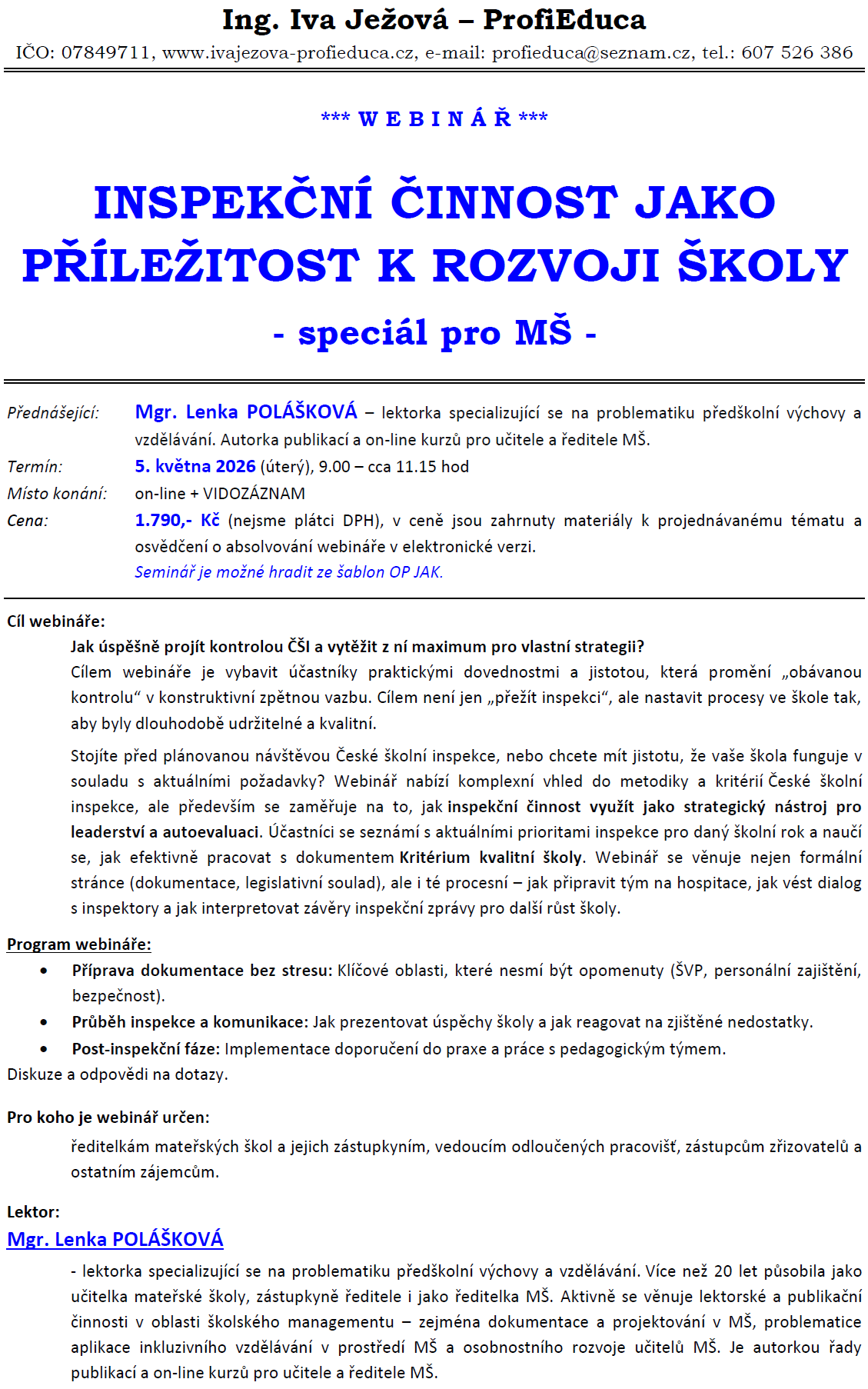 WEBINÁŘE, SEMINÁŘE